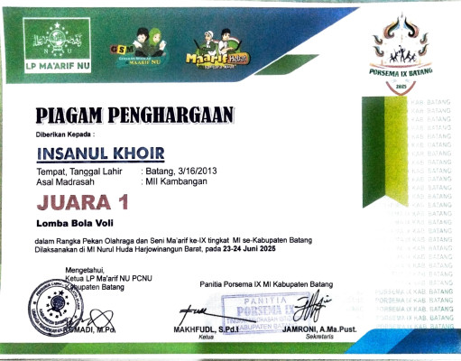 MI Islamiyah Kambangan adalah sekolah swasta di bawah lembaga pendidikan Maarif NU yang menyelenggarakan pendidikan yang berbasis keunggulan lokal dan global yang memanfaatkan keunggulan lokal dan kebutuhan daya saing global dalam aspek ekonomi, budaya, bahasa, teknologi informasi dan komunikasi, ekologi, dan lain-lain, yang semuanya bermanfaat bagi pengembangan kompetensi peserta didik..